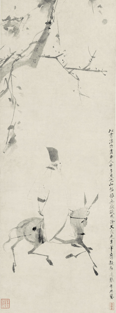 上海中國畫院藏有一幅羅聘(1733〜1799)的〈鍾馗騎驢圖〉,用筆磊落,加以大塊面的留白,西安美術學院也藏有一幅羅聘繪製的相同題材畫作,圖式基本一致,應是作為贈送、出售等形式的大量生產之作。有趣的是,這兩幅的圖式與徐渭(1521〜1593)的〈驢背吟詩圖〉如出一轍,包括驢的姿態以及驢腿所使用的書法用筆,均十分雷同。臨仿手段如此直接,但在羅聘畫上題跋中並未有任何註明,且包括羅聘在內、強調個性化表現的「揚州八怪」等人,似乎都不喜歡在畫中標註「臨某家」、「仿某家」等字眼,即便那是十分明顯的臨摹之作。時至道咸時期,這一臨仿風氣益盛,畫壇的仿古潮流與「四王」正統時期相比,有過之而無不及,以潘曾瑩(1808〜1878)為例,所著《小鷗波館畫識》中論及率最高的便是「古人」二字:「正見古人探索無窮之妙……古人作一畫必慘澹經營……觀古人畫不用勾勒而雲氣蓬勃……乃知古人無所不能……臨摹古人貴神似不貴形似……古人著墨不多,氣韻自足」。這些字眼不僅大量出現在書畫論著中,畫作題跋中也是數不勝數。這時期的藝術家們更想透過選擇學習某家的筆法,在古人的筆墨中尋找自己的繪畫方向,促使道咸時期的繪畫在看似相類的風格中又具有鮮明的個人特色,並出現像奚岡、黃易、戴熙、湯貽汾等名家,同時期的畫家程庭鷺同樣也踐行著相似的繪畫方法。程庭鷺在道光、咸豐時期的江南畫壇扮演重要角色,是討論當時仿古潮流繞不開的人物,但在今天的美術史研究中卻被長期忽視。