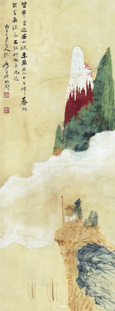 在此拜師求藝、旅居海外以增廣見聞的階段,張大千固然迎來迥異於往的人生境遇,然未婚妻謝舜華的因病猝逝不啻予其重擊。當時張大千自日本返國,本欲回四川奔喪弔唁,惟適逢復辟兵亂,道路阻隔,終未能成行。此刺激促使張大千於松江禪定寺剃度為僧,「大千」之名便是該寺住持逸琳法師所取。雖前後距其返俗僅百日之期便由張善孖捉獲帶回,實亦對其影響匪淺。 |