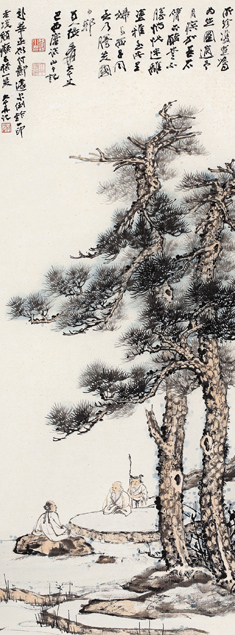 在此際陸續來臺寓居的藝文人士之中,尤以素具「渡海三家」美譽的溥心畬、黃君璧與張大千成為中原文化正統的象徵系譜。「渡海三家」對戰後臺灣藝壇發展之影響不容小覷,特別是至今於國際藝壇或拍賣市場中皆備受推崇的張大千,無論談及傳統書畫與現代藝術,其成就皆屬出類拔萃。一九四九年對於張大千亦屬標誌性的斷點,其曾短暫來臺舉辦此地首次個展「張大千畫展」,但該時政局尚處動盪未明之際,因此旋即再度啟程遠遊海外,開始長時間的旅居生涯,迄及一九七六年才復返臺灣定居。